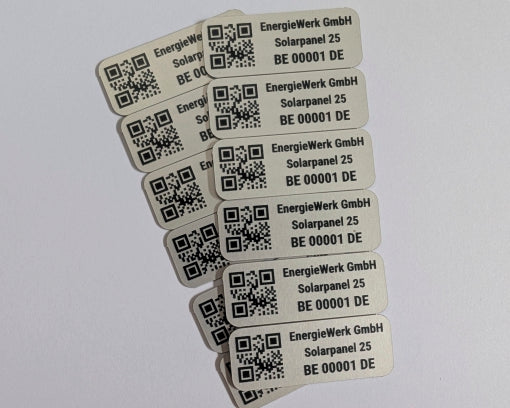 Der Aufdruck wird mittels Laser dauerhaft in das Metall eingraviert.